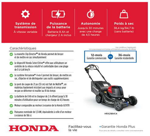 HONDA TONDEUSE/Batterie HRX-BV 1,5 kW